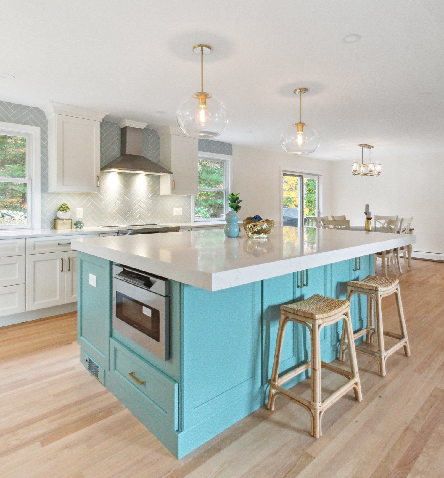 A high-end East Greenwich kitchen with boldly colored cabinetry as the star. Designed to feel energetic yet refined, this space proves that luxury doesn’t have to play it safe.